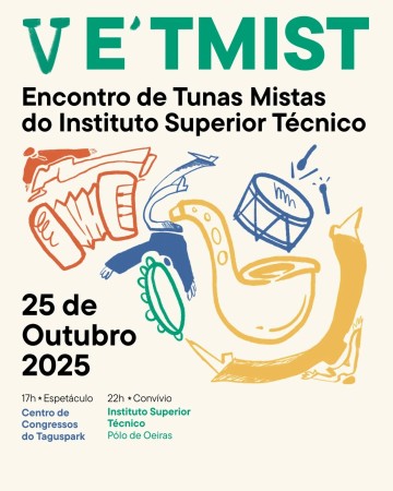O Encontro da TMIST – Tuna Mista do Instituto Superior Técnico vai envolver um espetáculo no Auditório do Centro de Congressos do Taguspark e o convívio de estudantes no campus Oeiras do Instituto Superior Técnico. A TMIST – Tuna Mista do Instituto Superior Técnico surgiu a 19 de setembro de 2006, movida pelo sonho de um grupo de alunos trazer a atividade tunante para o campus Taguspark do Instituto Superior Técnico. Desde então, uniu estudantes, dos demais cursos e idades, em nome da música e do convívio, tendo sempre como objetivo elevar o nome da instituição que representa e formar os seus membros a nível pessoal e musical. Atualmente, a TMIST conta com a organização de quatro edições do E’TMIST – Encontro de Tunas Mistas do Instituto Superior Técnico, três edições do TMIST – Festival de Tunas Mistas do Instituto Superior Técnico, e uma edição do Ser’TMIST – Serenatas a Oeiras, promovendo a cultura em Oeiras e o convívio entre estudantes.